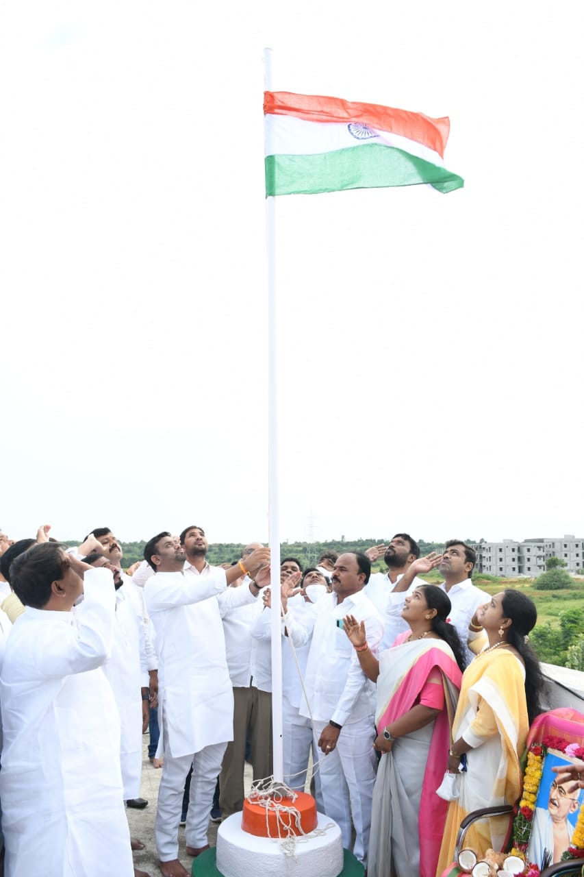 తాండూరు: స్వాతంత్ర దినోత్సవం సందర్భంగా ఎమ్మెల్యే పైలట్ రోహిత్ రెడ్డి తన క్యాంపు కార్యాలయంలో ఆదివారం జాతీయ జెండాను ఆవిష్కరించారు. ఈ సందర్భంగా ఆయన ప్రజలకు 75వ స్వాతంత్ర దినోత్సవ శుభాకాంక్షలు తెలిపారు. ఎమ్మెల్యే మాట్లాడుతూ.. ఎంతో మంది మహనీయుల త్యాగ ఫలితమే ప్రస్తుతం మనం స్వేచ్చగా బతకడానికి కారణమన్నారు.